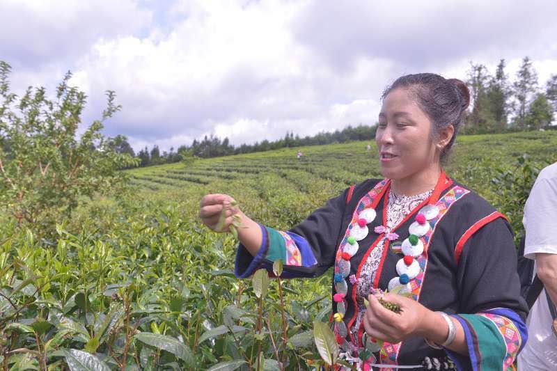 長(zhǎng)田壩村支部書(shū)記沙路正熱情地向我們介紹茶園種植的成果